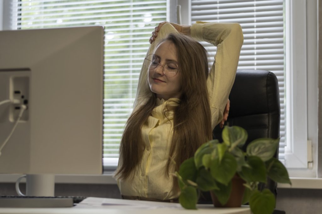 Cuando estamos sentadas realizando una tarea repetitiva en el escritorio, nuestras extremidades sufren mucho. Dichas repeticiones, de hecho, pueden favorecer a problemas como el síndrome de túnel carpiano y artritis. Por esto, es recomendable que por 30 minutos de trabajo tomes una pausa activa de al menos 1 minuto y te estires.