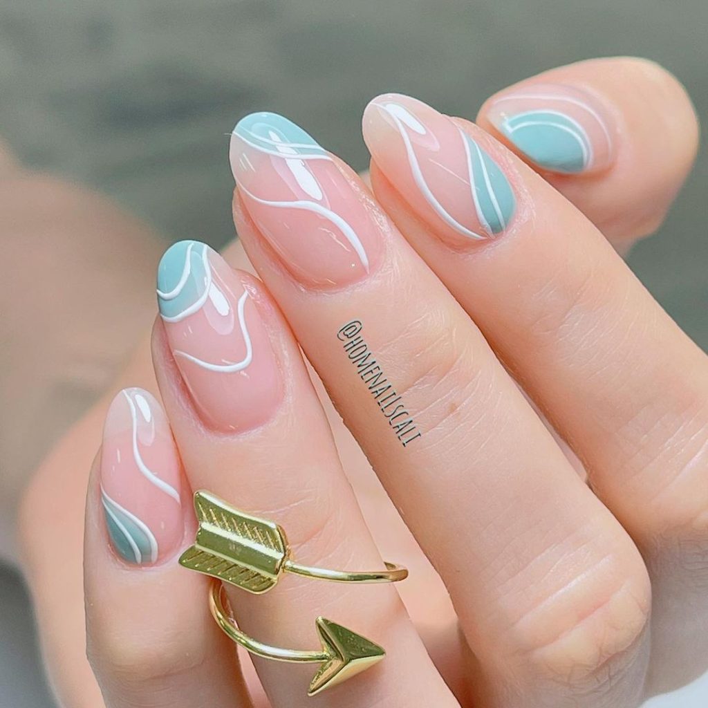 Esta manicura tiene diferentes inclinaciones y profundidades, por lo que en cada uña puedes realizar un patrón único. Tal como es el movimiento de las olas.