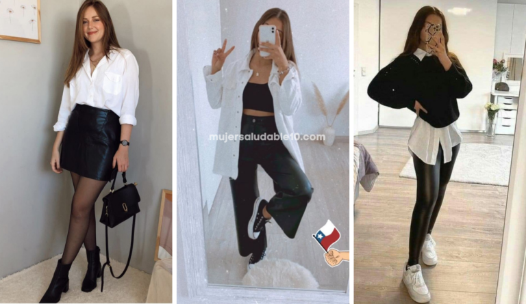 Para la temporada de otoño-invierno, una idea de outfit sería usar leggins negros con una camisa blanca extra grande y un suéter un poco más corto encima, del color que desees, puede ser otro neutro o llamativo. Asegúrate de sacar el cuello de la camisa y complementar con unas zapatillas deportivas blancas, con botas o botines negros.
