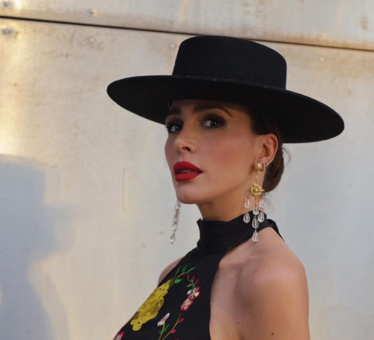 Para complementar su gran estilo, la influencer sevillana lució un sombrero sobre su melena recogida, unos aretes largos y un bolso también de color negro.