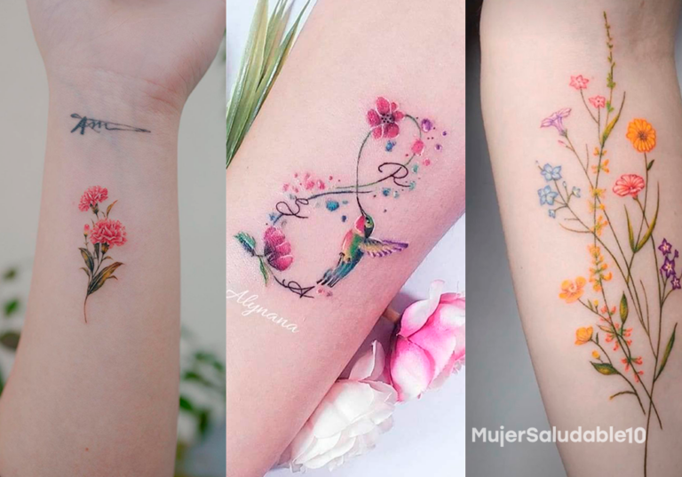 A este pajarito se le ha relacionado con que, si se aparece en algún lugar, y perdiste a un ser amado, su presencia se verá allí reflejada. El colibrí es símbolo de fortaleza, energía vital y la alegría de vivir. Todos conocemos sus radiantes colores, por ello, también se relaciona con la perfección. Y qué mejor, que esté acompañado de las flores, que son de las que se alimenta y le dan vida. ¡Tendrás un lindo jardín en tu brazo y que muchos admirarán!
