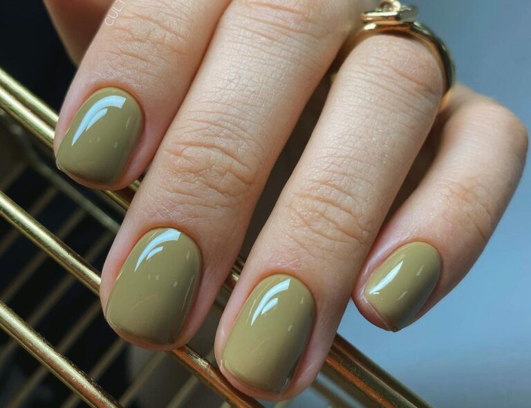 El color verde olivo es uno de los verdes más elegantes que hay, gracias a su tono neutro esmaltado. Puedes pintarte la mayoría de las uñas y dejar el dedo anular con un francés de ese color, si quieres puedes añadirle algo de pedrería un detalle de fina coquetería, un estilo sencillo y elegante especial para las amantes de los colores opacos.