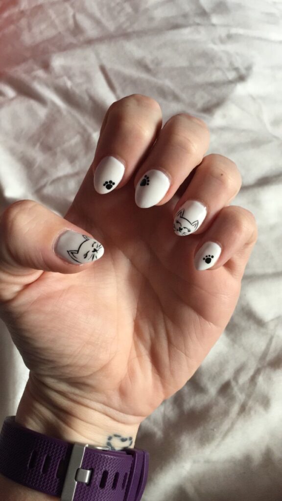 Luego, comienza a pintar la silueta del gatito. Incluso, si eres una romántica empedernida, podrás añadir un corazón y jugar con la técnica de líneas y puntos en las otras uñas. Te aseguro que tus uñas lucirán plenamente cautivadoras. ¡Vaya, serás la sensación!