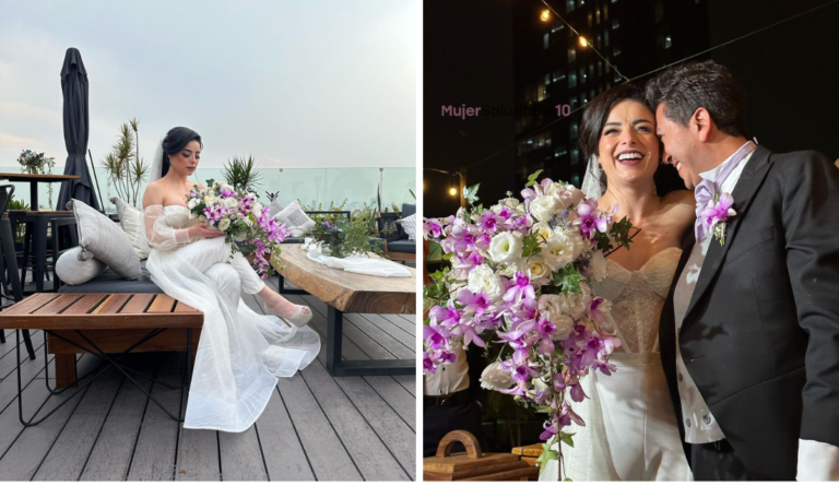 Por otra parte, el ramo de la artista fue de flores lilas y blancas y su precioso vestido llevó el sello de la diseñadora Débh Herrera. Las argollas fueron diseñadas en plata y un highlight es que el de ella lleva tres diamantes.